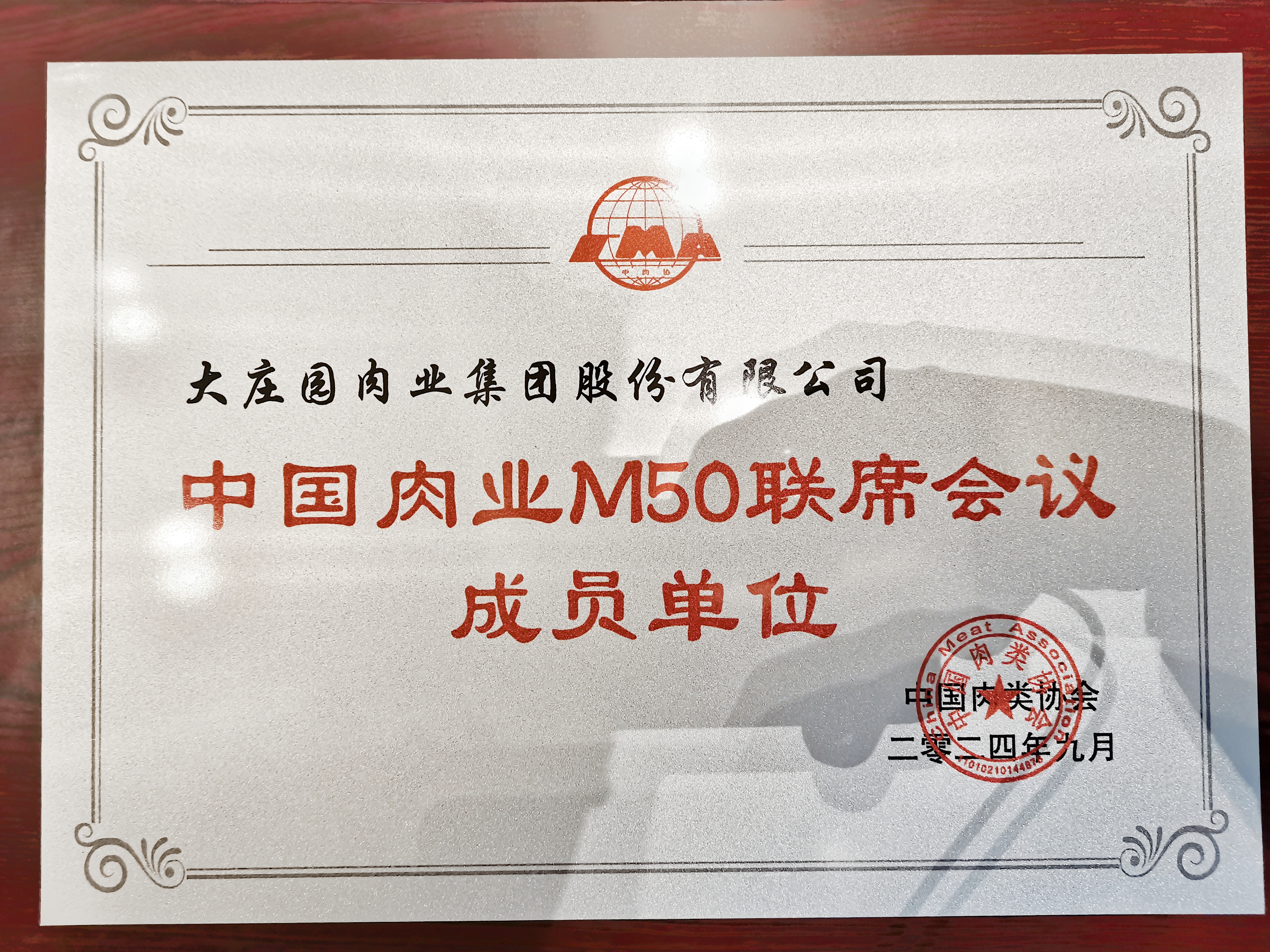 在同期舉行的2024肉類產業創新發展大會暨肉類產業高層圓桌論壇上,大莊園集團營銷副總裁李萬利先生代表中國牛羊肉協會會長陳希濱先生受邀出席,并就《我國牛羊業發展現狀與趨勢》進行了分享。大莊園集團被授予世界肉類組織金牌會員和中國肉業M50聯席會議成員單位。