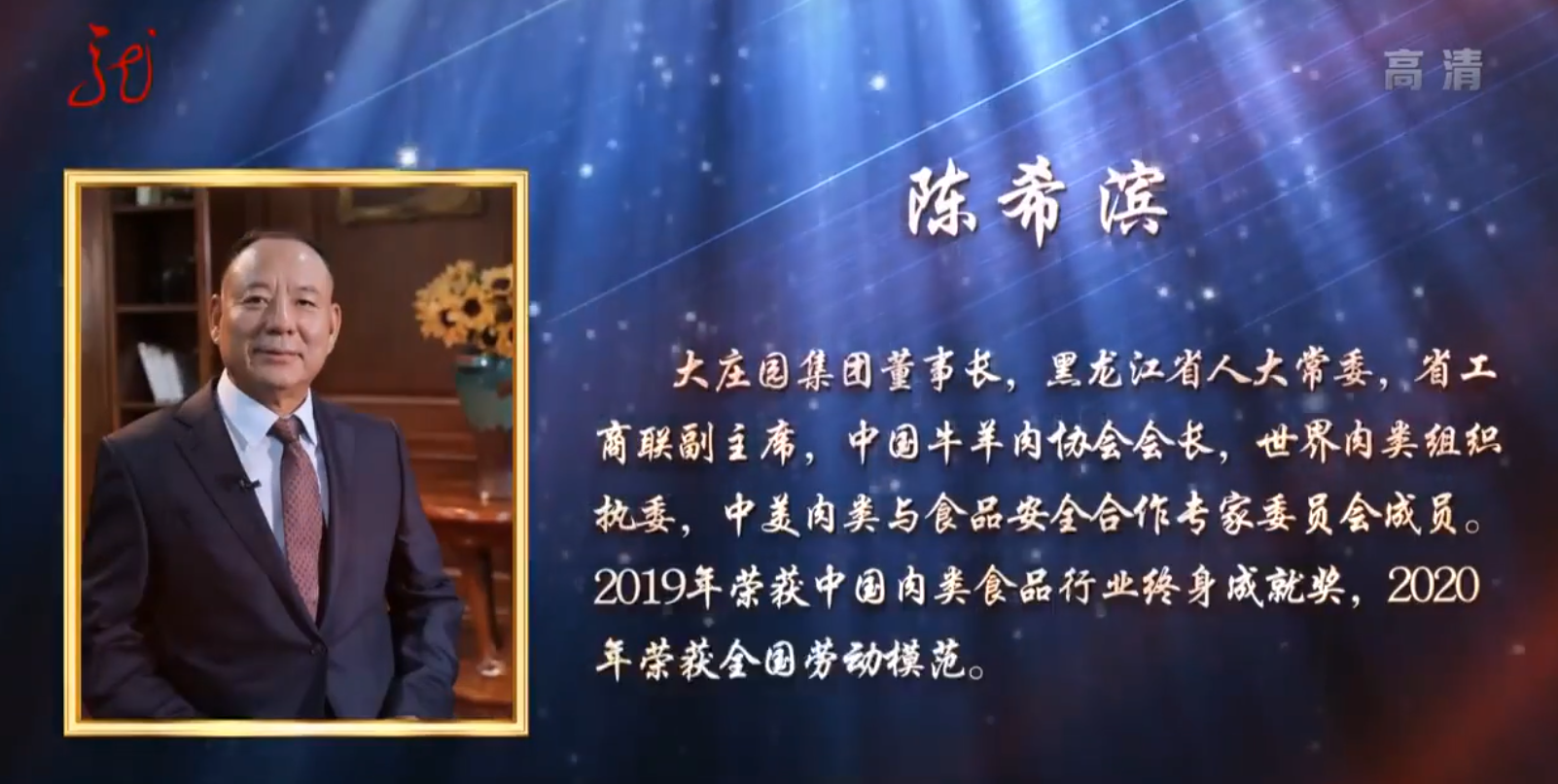 2019年9月24日,大莊園集團(tuán)董事長陳希濱先生榮膺中國肉類食品行業(yè)最高個人獎項:“終身成就獎”,成為中國牛羊肉行業(yè)獲此獎項的第一人。