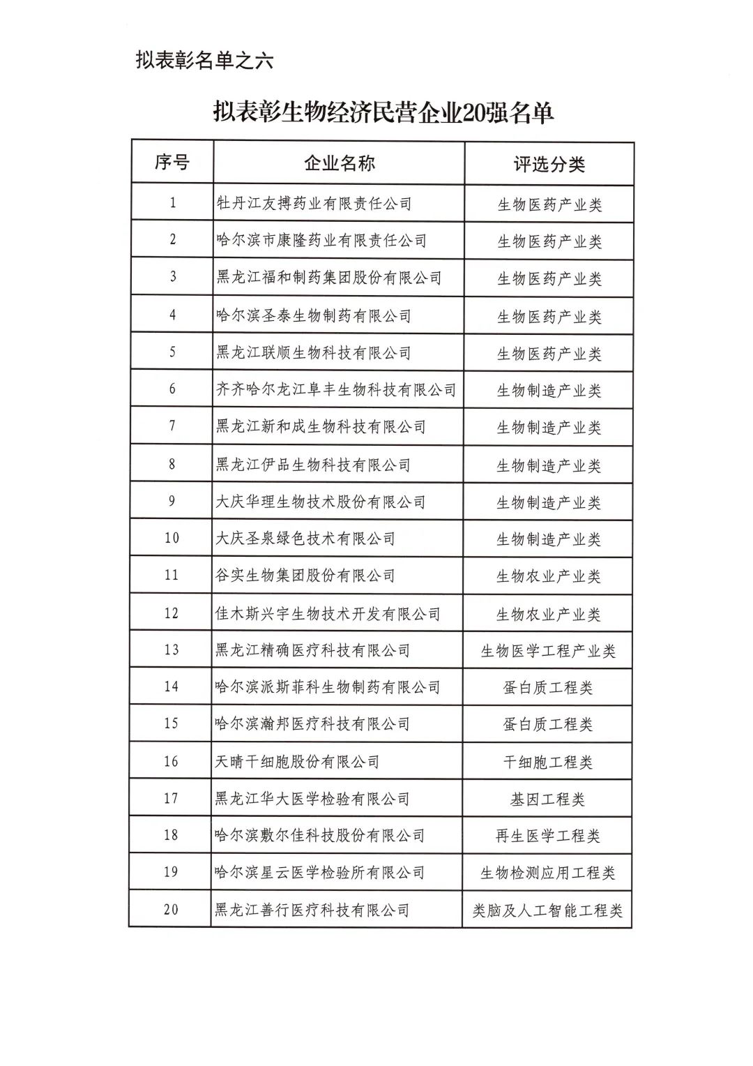 按照省委省政府關于召開全省民營經濟大會的決策部署要求,擬對全省優秀民營企業進行表彰。經企業自愿申報、市(地)把關推薦,評審小組排名,征求相關部門意見等程序,擬表彰全省累計納稅民營企業50戶、就業突出貢獻民營企業20戶、民營高新技術企業50戶、外向型經濟貢獻民營企業30戶、龍江質量品牌優秀民營企業50戶、生物經濟民營企業20戶和數字經濟民營企業20戶。現將擬表彰名單予以公示。