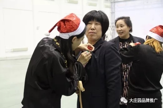 工作人員為邱麗霞總經(jīng)理佩戴節(jié)日標(biāo)志